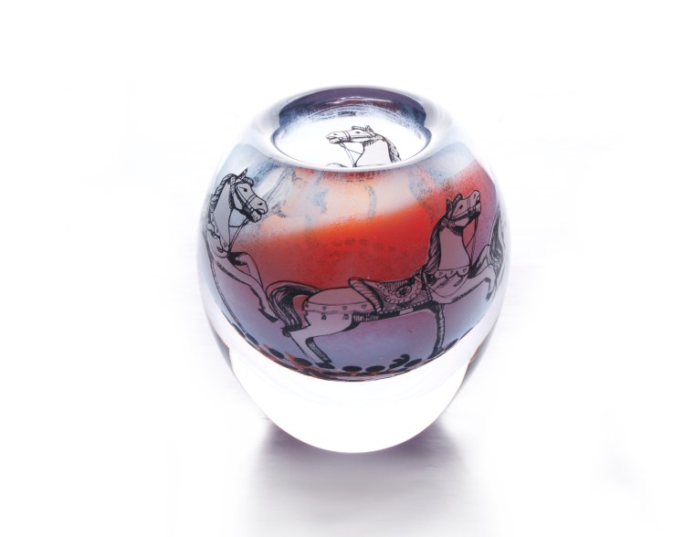 Sini Majuri is combining 100-years old graal technique with modern 3D design creating 3 to 6 layered images inside glass. Her works are cartoon stories inside glass and exhibited in 30 international exhibitions around the world, for example in London, Toronto, Leerdam and New York. The optical illusions of the glass material make her works surreal and dreamlike.